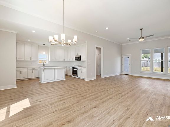 Estimated completion date: complete and ready to move in Nestled inside of Bedico Creek is a collection of neighborhoods surrounded by nature. Deer Trail Phase III, is Alvarez Construction's newest phase of new homes in Madisonville LA. Bedico Creek prides itself on being a community that strives to conserve and preserve, all while living a private and peaceful lifestyle within a gated community. Some features of Bedico Creek include miles of trails with beautiful wilderness views, natural wildlife habitats along hundreds of acres of lakes, parks and nature preserves, and a comforting horse fence backdrop lining the property. When you choose to live at Bedico, one lot buys you 500 acres of nature. The Boxelder plan is a 4bed/3bath with added office, single-story home with open and spacious living areas, and 11' high ceilings. The living room is open to the dining area with a wall of windows to the backyard. The adjacent kitchen features a chef's island, WiFi smart appliances, a gas cooktop, a separate wall oven, and a hallway pantry. The private Master bedroom has an en-suite bathroom with dual vanities, a walk-in shower, garden tub, WC, and walk-in closet. Separate bedroom 4 has an adjacent bath and linen storage. Stone granite counters in kitchen and all baths. LVT flooring and oversized ceramic throughout the home with carpet in the bedrooms. The home has a full-size laundry room and a secure entrance from the garage. Private office or flex room measures 9' x 8'. Courtyard-style back porch. Luxury options: Upgrade Carpet to Vinyl LV2: (primary closet/BR2/BR3/BR4/Office) LV3 Tile in bathroom floor Single Basin Sink Cabinets to the Ceiling LV1 Quartz Countertops LV2 Cabinet Hardware (Satin Nickel, Rounded Pulls) LV2 Tiled Shower in Primary Bth Upgrade Framed Mirrors LV2 Satin Sleek Lighting Package