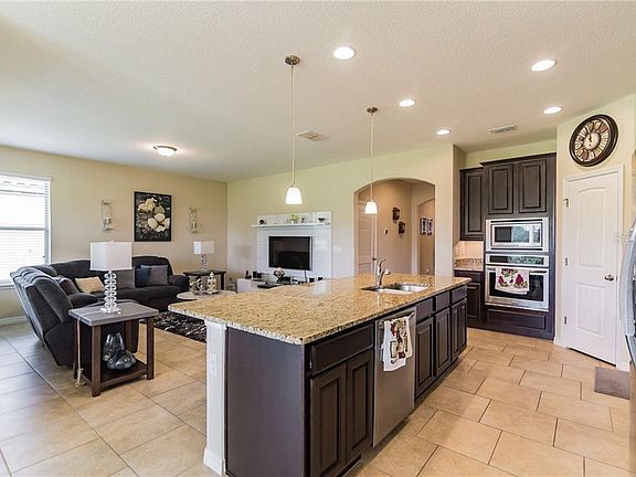 Price reduced! Don't miss the opportunity to own this Beautiful home, built in 2017. Open floor plan with 4-bedroom, 3-bathroom, in a highly desirable, gated community of Terralargo. This residence features a modern open floor plan that accentuates natural light. The great room allows everyone to be together while the cook is in the kitchen. Great for entertainment! Luxurious gourmet chef's kitchen with gorgeous granite counter-tops, stainless appliances, built in oven and microwave, and smooth cook top. Also, granite island with bar stool seating that flows nicely into the dining area. Cover screen lanai for outdoor family enjoyment. It is a resort styled community with clubhouse, fitness center, zero depth entry pool, covered playground, street lighting, sidewalks, and lush landscaping. The community is located near schools, fitness centers, numerous restaurants, retail shopping centers, entertainment, medical facilities and much more. Just minutes from I-4, perfectly located about 30 miles to the west from Tampa. To the east 35 to 55 miles from Kissimmee and Orlando, where you can enjoy all the delights of Florida's team parks.