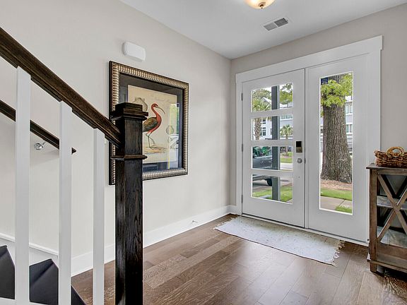 Welcome to this stunning end-unit townhome in a serene low-country location. Large windows flood the loft-like space with natural light. The main level features an open-concept living area with soaring ceilings and an 8 x 12-foot glass door leading to a covered deck. This is the perfect spot for outdoor dining and enjoying views of heritage oaks and nearby marshlands.The kitchen is a chef's dream, with quartz countertops, a spacious island for seating, and premium appliances. The custom tile work adds a stylish touch, while the adjacent dining area is ideal for gatherings. A conveniently located powder room provides added comfort for guests.On the ground floor, the mother-in-law suite has a private entrance, a kitchenette, a full bathroom, a walk-in closet, and a covered patio that opens to a lush backyard bordering park-like city-owned land. This flexible space is ideal for accommodating guests, hosting family, or creating rental income opportunities. The top floor houses the primary suite, which includes a sitting area and a private covered porch. The spa-inspired bathroom features a soaking tub, a tiled shower, a dual quartz vanity, and a walk-in closet. The second bedroom has an en-suite bathroom for privacy, while the conveniently located laundry area makes daily chores easier. Quality craftsmanship is evident throughout the townhome, from the oak flooring and craftsman-style trim to the elegantly designed doors. The energy-efficient foam-insulated attic and full garage add to the home's functionality. Located just a short stroll from the vibrant Park Circle area, it offers quick access to restaurants, shops, and multiple entertainment venues. Nearby parks offer a fishing dock, two disc golf courses, a state-of-the-art playground, and a recently opened public athletic center with a pool. With its prime location, attractive design, and flexible living spaces, this townhome is an unusual find. It backs to a rare natural marsh area. Schedule a showing today to discover the perfect blend of modern convenience and low-country charm.