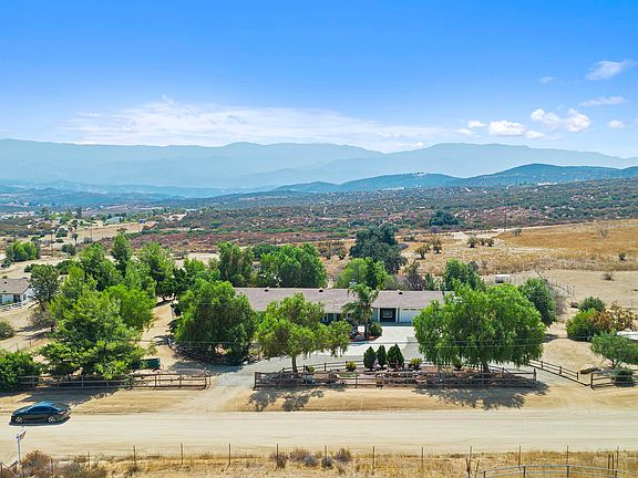 This home is a CUSTOM UPGRADED 3B/2.5BA, 3-car garage centrally located between San Diego and Los Angeles on 4.59 acres. The kitchen has upgraded granite counter tops and cabinets, stainless steel appliances, upgraded faucets, a large island with bar seating and a prep sink. There is upgraded flooring and ceiling fans throughout as well as a security system. It features a GREAT ROOM designed for entertaining. Step out of the great room to the backyard under a large patio cover showcasing the views. The master bedroom features arched entry to bathroom with dual sinks, jacuzzi tub, separate shower, and walk-in closet. French doors open to a patio with an above ground spa. This property offers a custom barn you won't find anywhere else. Projects? You will love the air-conditioned workshop! There is hiking, biking, and riding trails. Plenty of space for your RV and toys. It is close to everything from, shopping, a fire department, hospital, lakes, and wine country. Low taxes! Don't miss it!