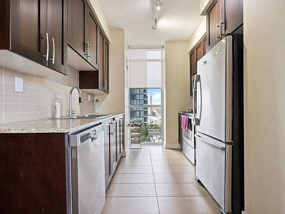 Immaculate 2 Br Suite In Prestigious Parkside Condo Bldg. Each Room Nicely Furnished. Very Nice Layout Separate Kitchen With Large Lookout Window. Lavish Soon & If Of Amenities, 1 Parking 2 Lockers Included.