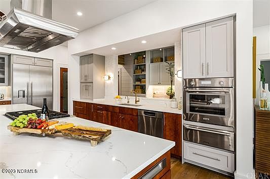 - Included: Vented Exhaust Fan, Gas Cooktop, Built-In Microwave, Washer, Refrigerator, Dryer, Dishwasher, Wall Oven