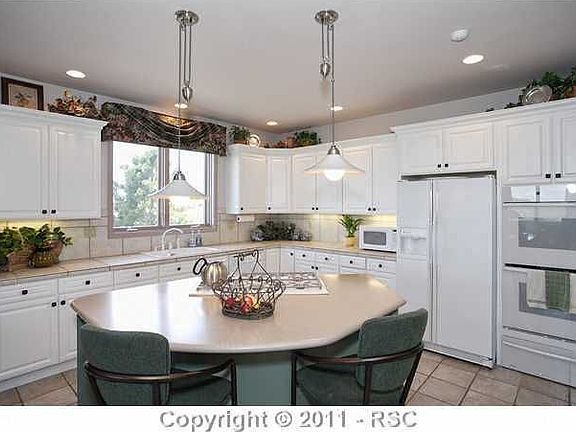 Complete info: http://4065stonebridgepoint.BestHomeAround.com - Main Level Living at its best. Well Maintained One Owner Home in Excellent Condition in a Gated Community. Boasting 3 Bedrooms, 3 Bathrooms, Oversized 3 Car Garage (one of only two three car garages in Stonebridge Community) and nearly 4,000 Square Feet. Very Private, Corner Lot Offering Maximum Privacy. The Main Level Features an Open Floor Plan that is Perfect for Entertaining. The Spacious Great Room includes Cathedral Ceilings, Extra Tall Sliding Glass Doors to Patio, Large Custom Fireplace Mantel, Cozy Gas Fireplace, Custom Built-In Bookcases, Professionally Installed Surround Sound, City and Mountain Views. Perfectly Appointed Kitchen with Upgraded Cabinets and Crown Molding, Custom Designed Desk with Corian Desktop, Glass Front Doors and Shelving for Cookbooks, Large Custom Island with Corian Countertop, Extra Large Thermador Built-In Double Ovens and Matching Warming Drawer, Five Burner Gas Thermador Cook-Top in Island and Upgraded Ceramic Tile Floors, Walk In Pantry with tons of storage, and the only Home in Stonebridge with Pendant Lights Over the Island. Unwind in the Main Level Master Retreat featuring views of city lights and Mountains, walk out to deck, custom built-in bookcase, large walk-in closet with pocket door, custom built-in chest of drawers, shelves and shoe storage. The Luxurious 5 Piece Master Bathroom includes Double, Separate Vanities, custom light fixtures, a large shower with built-in seat, separate water closet and large Jacuzzi bathtub. The Main Level Office includes views of Pikes Peak and double glass doors. The finished walk out basement includes a large, open room with plenty of room for a full size pool table, built-in game closet, large windows, built-in custom bookcase and a Professionally Built Custom Walk-In Wine Cellar that holds up to 700 bottles of wine featuring its own cooling system and custom designed cedar wine racks. There are 2 Spacious Bedrooms in the Basement and an extra large, spa-like bathroom. There is also a large unfinished storage area that is plumbed for an additional bathroom and the area can easily be made into a 4th bedroom. Enjoy peaceful evenings on your spacious patio. Located in a community that not only offers security but also unbelievable mountain and city views, walking trails, a private park and more.