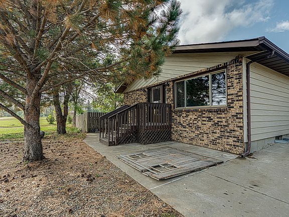 This 4 acre home is located within minutes from the city of Mandan and offers a lot of privacy. There are three bedrooms on the main and a full bath. The living room and kitchen have vaulted ceilings and a nice kitchen-dining combo. There is a sliding glass patio door off the dining room that overlooks the fenced back yard. The mud room/ laundry is right off the 2 car heated attached garage. The lower level has a family room with a natural gas fireplace, wet bar with cabinets, one bedroom (non conforming) or office, exercise room, utility and storage rooms. There are two yard sheds on cement slabs with electricity, a small garden and a patio area with mature trees. No horses allowed. Property is required to have flood insurance.