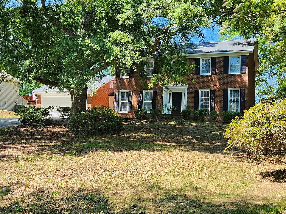 Impressive home in Windtree off Macon Road. Located off the road for privacy, Entry Foyer with Double Doors to Formal Living Room which Opens to Separate Dining Room! Updated Kitchen with Pantry, Separate Family Room with Fireplace, FLEX ROOM could be 5th Bedroom/Office/Playroom, Upstairs Primary Room has Walk in Closet and Separate Bath, Guestrooms are large, Double Garage with Storage, TWO Patios, Fenced Backyard, Great Location!
