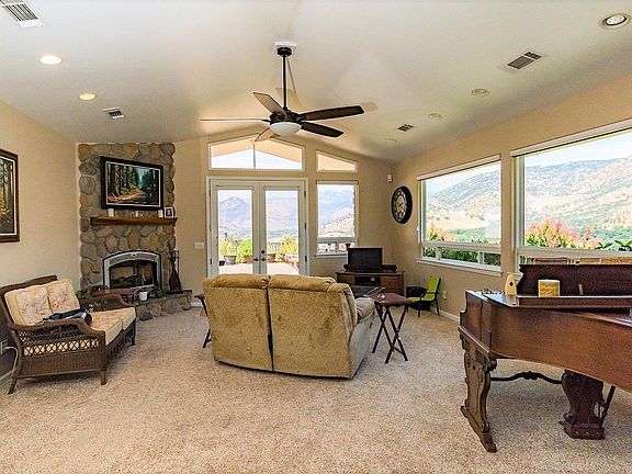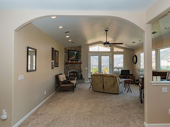 Upon walking into the home and observing the views one will exclaim, Yes please! This well appointed home has so many custom features including the large picture windows that take advantage of the huge views. The large dining space lends itself toward memory making family gatherings as does the light, bright kitchen.The kitchen has abundant storage, a walk in pantry, extra storage room, office/work space and the separate oversized laundry room is conveniently located off of the kitchen. Also off of the kitchen is the finished garage. Back in the house and down the hall are bedroom #2 and #3. Each of those bedrooms are located adjacent to another office/work space and the second bathroom. Walking into the master suite is like walking into a secluded Shangri-La. The master suite has a sizeable walk in closet and even boasts a built in ironing board. The master bathroom has a glass block shower and separate tub that takes advantage of views.