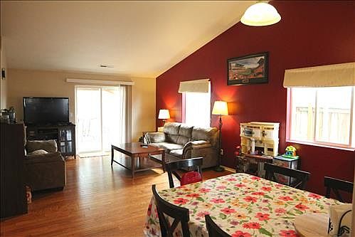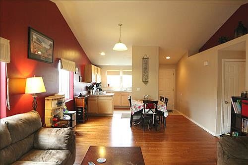 This Open Living Floor Plan Home offers 3 bedrooms, 2 baths, 1237 sq ft built in 2008. Beautiful Engineered Hardwood floors in the living room, dining area w high vaulted ceilings. Efficient kitchen layout w gas stove including ample storage space. Great master suite w oversized closet, master bath w tub & shower plus shelving. 2nd bedroom has a walk in closet. Inside laundry/mud room off the attached 2 car garage! Gas Forced Air w Central A/C. Outside your find great back yard space w raised garden beds.