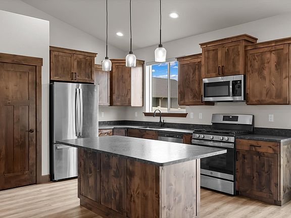 Welcome to a nearly new single level gem, built in 2022, boasting 1,604 square feet of meticulously designed living space, including 3 spacious bedrooms and 2 full bathrooms. The master suite is a private retreat with a luxurious bathroom and custom shelving in the walk-in closet. The spacious kitchen features sleek granite countertops and stainless steel appliances, all within an open, inviting layout. The home comes complete with natural gas forced air furnace and A/C! The fully fenced backyard provides a perfect outdoor oasis for relaxation and play. The entire yard has in-ground sprinklers for a great-looking yard throughout the summer months. The neighborhood includes walking trails and a full-sized sports court. Don’t miss out on this exceptional home that is only minutes from Glacier International Airport, Glacier National Park, and everything the beautiful Flathead Valley has to offer!