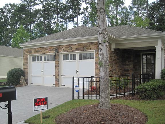 This lovely 2 BR, 2 bath patio home is located in the very desirable Cottages at Acworth gated community, minutes from shopping, dining and I-75. There are 5 rooms, all on one level, a total of 1588 sq. ft. on a 3000+sq. ft. lot, with many upgrades. The master suite features a huge lighted walk-in closet, French doors to the patio, and a large bath with double, solid-surface vanities and a separate shower and tub. An open floor plan connects the D/R with upgraded chandelier, the L/R with gas log fireplace, TV niche and vaulted ceiling, and the kitchen, which has a sky light and upgrades like a pot rack, new tile floor, cherry finished cabinetry, and granite counter tops and breakfast bar, as well as a gas stove with oven, built-in microwave, dishwasher, garbage disposal, refrigerator and pantry. An additional large pantry is adjacent to the D/R. The spacious 2nd BR has a lighted walk-in closet. The home has freshly painted walls, ceiling and trim throughout, recessed lighting, engineered flooring and tile (no carpet), central HVAC, smoke alarms, ceiling fans and a laundry room, complete with washer and dryer. Most window coverings remain. There is a two car garage, a slate tiled front porch with safety handrails, and French doors from the L/R and MBR open onto an enclosed brick patio and a garden with a water feature. It is wired for a security system and has a high-efficiency hot water heater. HOA dues of $175 month include water, trash, lawn maintenance, and some exterior maintenance. This home is move-in ready! For sale by Owner. Note: Large marble statues visible in some photos are available to an interested buyer.
