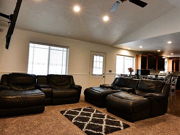 You will instantly fall in love with this beautiful home in Rigby which allows livestock! Main floor has open concept with the large kitchen having double dishwashers, plenty of space, gas range, and granite counter tops that flow into a built in dining table with enough room to seat 9 people! Just off the kitchen is the laundry room with access to both outside and to the large 2 car garage. This laundry room has built in lockers, a separate sink, and a pantry for the kitchen. On the opposite side of the home are 2 bedrooms, a full bathroom, and a HUGE master bedroom with double walk in closets, built in mini fridge for those midnight snack cravings, and a great master bathroom with jetted tub. The basement has a huge family room, large space for a rec area, separate storage with a kitchenette, a full bathroom, 2 HUGE bedrooms, and an additional bedroom with it's own door as a separate entrance, making downstairs a PERFECT mother-in-law suite! The outside of this home is just as amazing as the inside with an acre of beautiful land with a fire pit, hot tub, covered patio, garden area, large established trees surrounding the yard, and a shed as well as outbuildings! You DO NOT want to miss this slice of heaven!