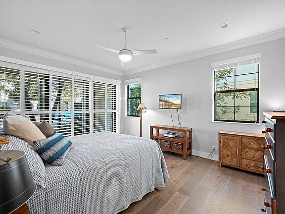 Experience Palm Beach Gardens living at its best in this highly upgraded Bristol Model 4 bedroom Townhome located in the Alton phase 1 neighborhood, situated on a quiet street. This end unit has 10 extra windows and allows sunshine in to make it feel like you are in a free standing home. Upgrades to the house include plantation shutters and blinds, crown molding, new fixtures in powder room and entrance hall, tiles on kitchen island, kitchen pendant lights, wine cabinet, LED fixtures, fans in all rooms, security system with 3 exterior cameras, dining lights under cabinets in kitchen, built in cabinets in primary and pantry, IWAVE air filtration in HVAC and HALO water filtration system, wood floors in downstairs bedroom and all stairs. The partial water view from the kitchen, along with th East facing 3 level outdoor space provides wonderful views. All this comes with a short walk to Alton Clubhouse and Alton Town Center with its shopping and dining.