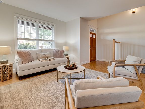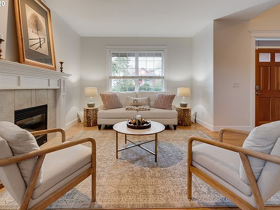 Light and bright craftsman inspired townhome with wood floors, gas fireplace, 10' ceilings, and nicely refreshed with brand new carpet & interior paint. Large owner ensuite features vaulted ceilings, walk-in closet, and bathroom with shower/tub combo. All appliances included + custom window coverings. Private back yard, attached garage with alley access. Fabulous location on a quiet street within strolling distance to all the fun activities of Mississippi & Williams corridors. No HOA!