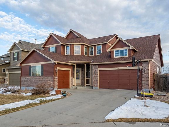Beautiful two-story home, located on a quiet cul-de-sac, featuring a 3-car garage, and a main-level primary suite! Located near Saddle Rock Golf Course, Central Recreation Center, parks, trails, open space, shopping, and dining- never be short of entertainment. This spacious home offers a versatile layout and a great private backyard perfect for relaxing or entertaining.