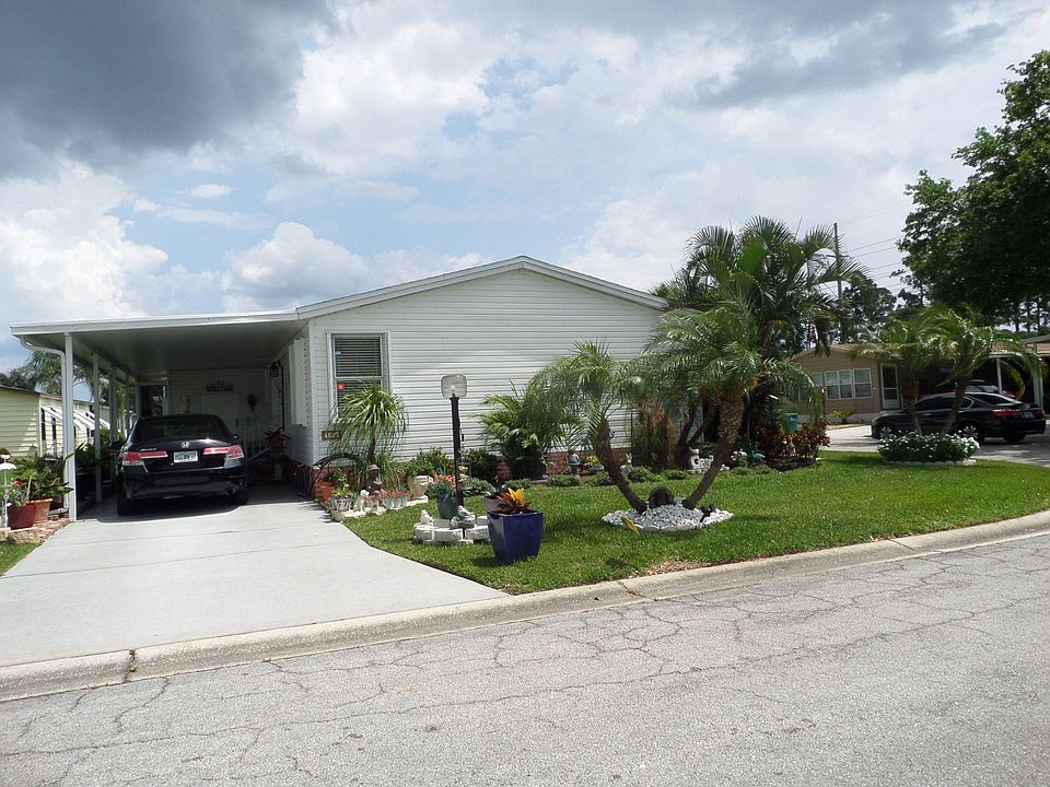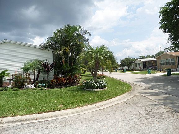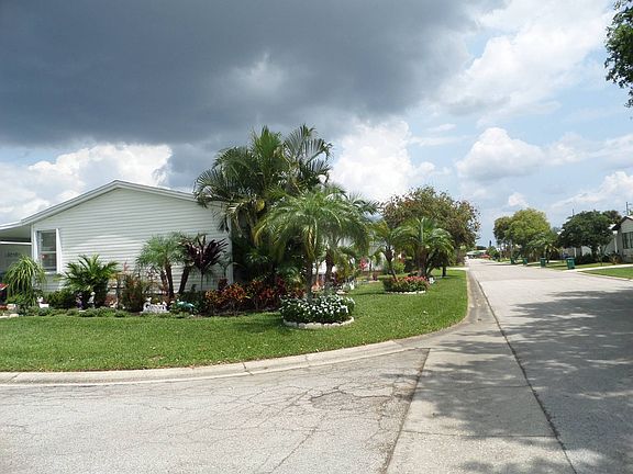 Talk about CURB APPEAL this home must be one of the nicest in the community. It is also Beautiful inside. You will notice the New Accordion Hurricane Shutters on Every window, that are super easy to operate. Built in 1997 with 3 bedrooms and 2 full baths. Roof is 6 years and A/C New in 2012. All New flooring with carpet Only in the primary bedroom for comfort. Freshly painted in neutral colors. Spacious kitchen that was totally remodeled in 2019. All stainless appliances that are 5 years new. Huge double pantry and cozy breakfast nook. Washer and dryer hook ups in the rear. Door to screened sun room where it seems the breezes just keep flowing for your comfort and enjoyment, with tall screens and a door to outside. Large living room with ceiling fan that is open to the dining room. A total of 4 ceiling fans with LED lights. The bedrooms are split from the primary, which is Huge and can easily fit a King bedroom set, plus a walk in closet. Primary bath has a walk in shower and private water closet. The other two bedrooms give you a comfy guest bedroom. The other is smaller and would make a great home office, craft room or anything you want. Both have walk in closets. The guest bath has a shower / tub combo. This home is a Must See!!!! Lakes of Melbourne is a wonderful 55+ community that is Gated for Safety. Close to everything, shopping, restaurants entertainment, golf, medical facilities and more. Heated pool, Big clubhouse with billiards, large card / game room, library, fitness room plus a Huge ballroom with shows, dances and parties. Lot rent of 705 per month.