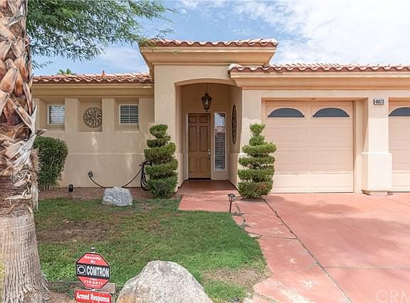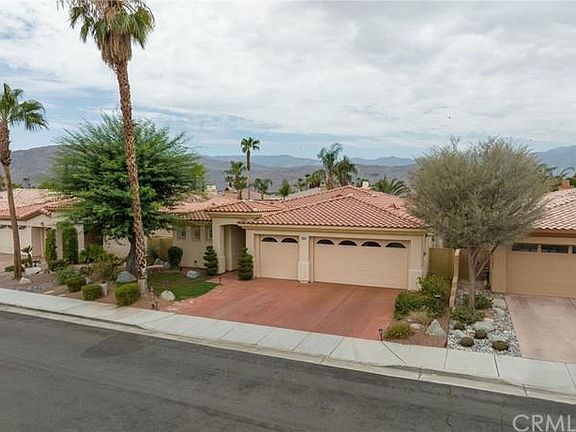 PRICE REDUCTION OF $75,000! Welcome to Shangri-La - this beautiful single-story home has 3 master suites all ensuite. Step into elegance with high ceilings with crown moldings, arched doorways, custom drapery, silhouette shades, tile and carpeted floors. This home is perfect for a large extended family, empty nesters, weekend getaways or a perfect winter home. The beautiful setting has lush landscaping and is set in the exclusive Palm Desert. Close to El Paseo, shopping, dining, hospitals, and the Palm Springs Airport. This home comes completely furnished. Walk into a beautiful formal living and dining room with arched doors ways, alcoves, tile flooring and custom drapes. The dining room, living room combo has a slider to the exterior and a beautiful fountain. The ceiling are high with alcoves and recessed lighting. A special built-in bar greets your guests with cabinets, refrigerator and sink. Also, for the entertaining convivence is a butler's pantry adjoining the kitchen. Just off the entry is the first Ensuite Master with large walk-in closet, custom drapes and shades. The combination family room kitchen has large picture windows overlooking the amazing backyard. Family room has built-ins, arched doorways, recessed lighting, fireplace and surround sound. The Kitchen is amazing including a double door refrigerator and freezer, large center island with 5 burner stove, double door pantry, recessed lighting and pedestal lighting. The office has built in desk, cabinets and a large owners closet perfect for a winter home. There is a 1/2 bath great for your guests. The second ensuite master is so charming with its chandeliers, pocket doors, crown Moulding, custom drapes. But oh la la the main master is spectacular with high ceilings and a huge master closet and master bath with large walk in shower with 2 shower heads, a large soaking tub, two sinks, and vanity. And there is more - large laundry room with sink - a three car garage with built-in cabinets. To say nothing of the amazing backyard with large, covered patio, inground pool and spa and lush landscaping. This novel and amazing home is fully furnished - so just move into your own private resort with out and HOA fees. Call your agent for a private showing.