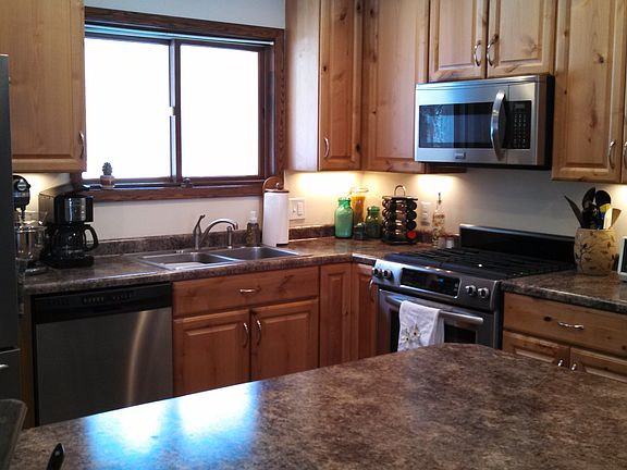 Nestled on 20 acres, home is close to town amenities yet private and secluded. All appliances updated and energy star rated as of 2012! Kitchen remodelled with slow close drawers and bamboo flooring. Main level living with knotty pine sunroom and newer windows. Egress window ready for fourth bedroom. Septic newly installed in 2010 for 4 bedroom capacity. Efficient wood burning stove to supplement Natural gas. Electric baseboard heat also in each room. Fiber optic cable for high speed internet and cable ready. Detached garage with loft for storage and 3 additional out buildings. 1 heated and insulated for a shop. Also has walkout basement. MLS# 4462347