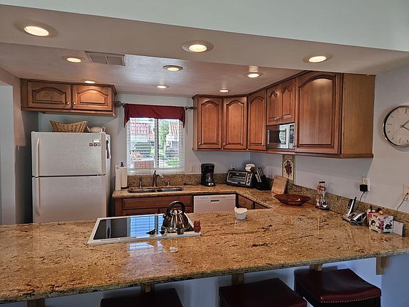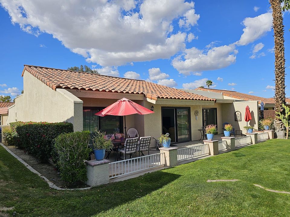 READ THIS BEFORE YOU INQUIRE. THIS IS A FULLY FURNISHED RENTAL FOR 1 MONTH OR MORE FROM NOW TO DECEMBER 2024. Experience the epitome of Desert vacationing in this exquisite fully furnished 2 Bedroom, 2 Bath CONDO located inside the prestigious guard gated Palm Desert Resort Country Club. Both Bedrooms and the Living Room, complete with a high vaulted ceilings, have sliding glass doors leading out to a large patio that is located just across the greenbelt from your pool. This well maintained getaway had a Kitchen facelift in recent years, including new cabinets, recessed lights, and a stunning granite slab breakfast or happy hour bar complete with matching leather barstools. Palm Desert Country club, aka "The Resorter" provides breathtaking views of the mountains rising majestically above the many lakes within the gates. The community features a champion 18-hole golf course, 28 court pickle ball club open for memberships, 20 pools & spas, bocce ball, cafe, and is in walking distance to the clubhouse which has a restaurant and bar when it's just too hot to cook! Close to El Paseo, Acrisure Arena, the Tennis Garden, the Living Zoo, and the Valley's best restaurants. Available off season from June to December for 30 days or more. The property will remain furnished. Disclosure: This is a single story condo with 1 attached wall. If you need a long term rental (2 months or more) Tenants pay for all utilities. A small dog might be permitted so please submit weight and breed. No smoking inside of the home. Monthly rate is $2100 off season. In season from January to April, it's $4300 a month.