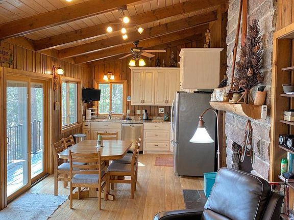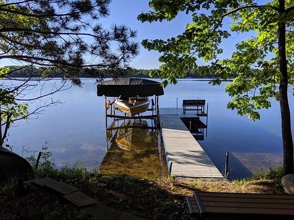 Retreat from the modern world to the privacy of this 3 bedroom, 2 bath walkout cabin situated on 168 ft of sand frontage on West Fox Lake. The 1.5 acre wooded lot is studded with towering pines and has a gradual elevation to the lake. You will also own a share of the West Fox Woods Inc. 114 acres of north woods forest which is located right across West Fox Lake Road. Remodeled year round home features knotty pine accents, vaulted beamed ceiling, wood burning fireplace, stunning lake views and a finished walkout lower level. The detached 3 story garage offers storage and a living space for guests to stay. The garage main level has a 2 stall garage, workshop and bathroom. The garage upper level has a craft room, bunk room and bathroom. The garage lower level has a tuck under garage with a 12 foot high door. Take in stunning lake views from the lakeside deck or porch. Enjoy fishing and boating fun on the Fox Lake Chain. Located minutes from all the Fifty Lakes and Crosslake amenities.