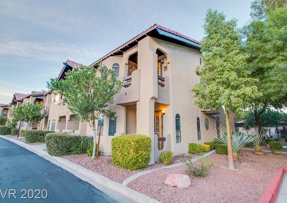 Gorgeous condo just minutes from strip! Upgraded throughout with tile floors, raised panel doors, garden tub, ceiling fans, and custom tile fireplace with mantle! Spotless and ready for move-in today! Refrigerator and washer/dryer included. Perfect location overlooking pool, spa, and lush grounds. Come and view this perfect 10!