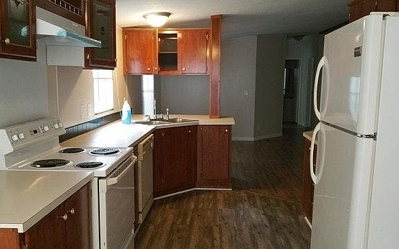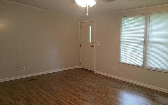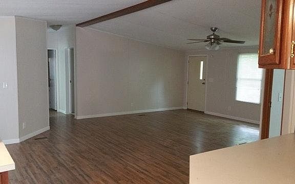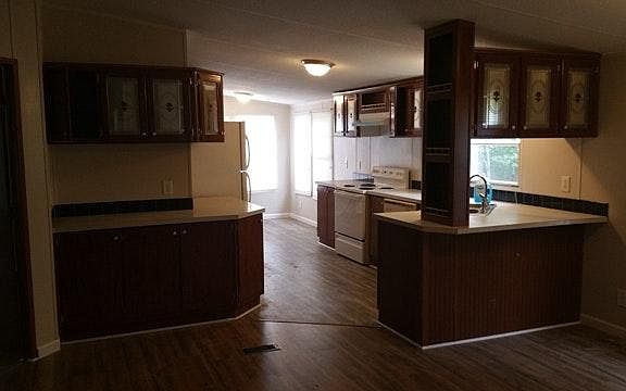 Exellent opportunity to have the nicest home you can find below $1000 per month. You will get a 3 bedroom, 2 bath home with a larger living room than I have in my own house, as well as a dining room area off to one side. This home also has a buffet area cabinets, dishwasher, fridge with icemaker, master bath, heat pump, 8x10 deck, wooded area surrounding 3/4 of the home. There is no big yard to mow, but a little grassy area out front and playground less than 100 feet away. No neighbor above or below you like an apartment. There is room for a utility building. Water and sewer is included so more savings. We are limited by not having pets that live outside so no neighborhood dog barking all hours of the day or night. This home is served by a state certified well system. It also has a septic system which limits it in the number of people than can occupy the home. It is in our manufacured home community but is positioned well and there is 30 acres of undeveloped land across the street. One positive of it being in our family owned community is that you can rest easy knowing we have full control of who your neighbors would be and will be doing a criminal background check on everyone. Water and sewer are included. We mow grass except for trimming which should be minimal. Criminal background and credit check required. Pets may require extra deposit or slightly increased rent depending on likelihood of damage.
