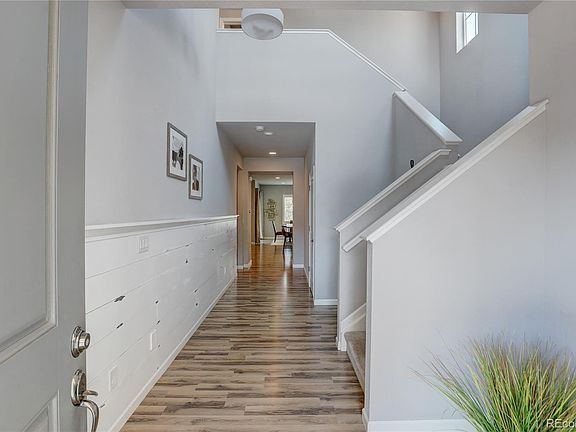 Welcome to your new home in Castle Rock! This immaculate, gently lived-in, thoughtfully upgraded home features 3 bedrooms, 3 bathrooms, an open concept great room, a bright dining area, and a beautiful, functional kitchen. This wonderfully neutral 2-story home shows like a model home with a blend of gray, white, and dark wood finishes. Highlights of the kitchen include dark espresso upgraded cabinets, modern hardware, high-end Whirpool appliances, substantial countertop space, upper and lower cabinets, and a large pantry for abundant storage. Enjoy the large living area off the kitchen with 9 ft ceilings providing plenty of room to entertain or relax. Also located on the main floor is a mud room with wall hangers and a built-in bench. Another nook is located near the entry for more storage or ready for your decorative touch. The master suite is a private oasis with large windows framed by beautiful plantation shutters, a decorative light/fan combination, an oversized closet, an enclosed water closet, and a large shower. Two more bedrooms and one more full bathroom of equal taste are also located on the upper level. An upstairs laundry room with newer included washer and dryer adds convenience and ease. The basement is unfinished and a blank canvas with egress windows, rough-ins, and an open layout to make this additional 1,100+ sq ft unique to your lifestyle! Two car 538 sq. ft. garage with built-in cabinets for extra storage. Desirable location with easy access to I-25, downtown Castle Rock, shopping, and recreation trails. This home is within walking distance of the neighborhood park, tennis courts, pool, and elementary school. Castle Rock is well known for being a quiet, upscale community with a small-town feel and easy access to work and play! Colorado living at its best awaits you in this turn-key home and lovely community!