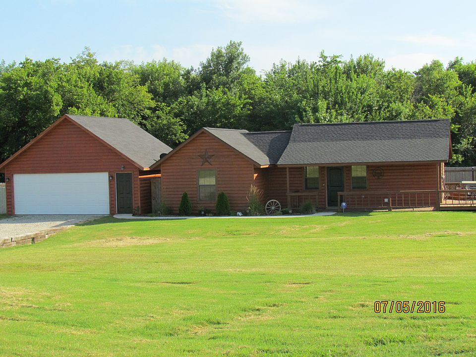 Two bedroom Log cabin near Guy Sandy boat dock on Arbuckle Lake. This cozy log cabin has a two car garage with ample storage, large wood privacy fenced back yard, and wrap around deck complete with hot tub. Relax in this rural retreat within minutes of the lake, shops and restaurants. Additional land with 30 x 50 shop with loft, water and electric available for purchase with house