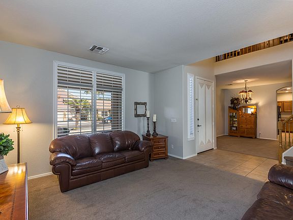 Stunning and spacious 4 beds +den, 3 baths home in a 3,080 sq ft floor plan that includes formal living, formal dining, family room and loft! The eat-in kitchen features abundant 36'' oak cabinetry, black appliances, kitchen island, walk-in pantry, RO system, breakfast bar seating and cozy casual dining area w/ sliding door leading out to the covered patio and large grass backyard with plenty of room for kids and pets to play on. The bedrooms and loft are found upstairs. The master retreat has vaulted ceilings and an attached bath with dual sink vanity, separate tub & shower, and large walk-in closet. Other features include: 2 +1 car garage with cabinetry, RV gate, carpet in bedrooms, plantation shutters, fruit trees in backyard, and much more! See today!