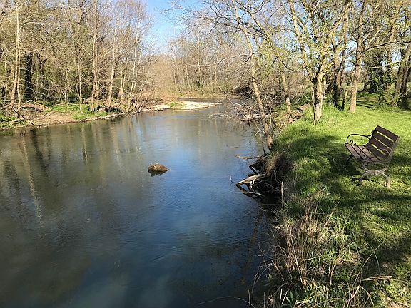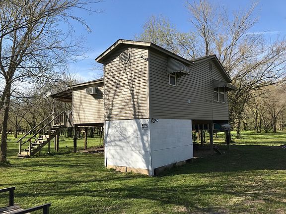 This is a river cabin on a real river, Shoal Creek. It is about 6 minutes from Exit 6 on I-44 (near Mercy Hospital). The 2 acre site is connected to NN Highway by a 50' wide strip of land, but we use a recorded easement thru the Rivers Bend Campground which is our neighbor, to access the house. We are connected to their water but the city of Joplin water line is in the NN right of way. The cabin has it's own septic tank. The property lies within a flood plain and has had water over the floor twice in the 10+ years we have owned it. We removed the carpet after the first episode. We have enjoyed and still enjoy this cabin. It is all electric with thru-wall style hear/air conditioning. With the exception of personal items, such as canoes, TV, radio/satellite TV, one chest of drawers, and some pictures, everything you see goes with the cabin.