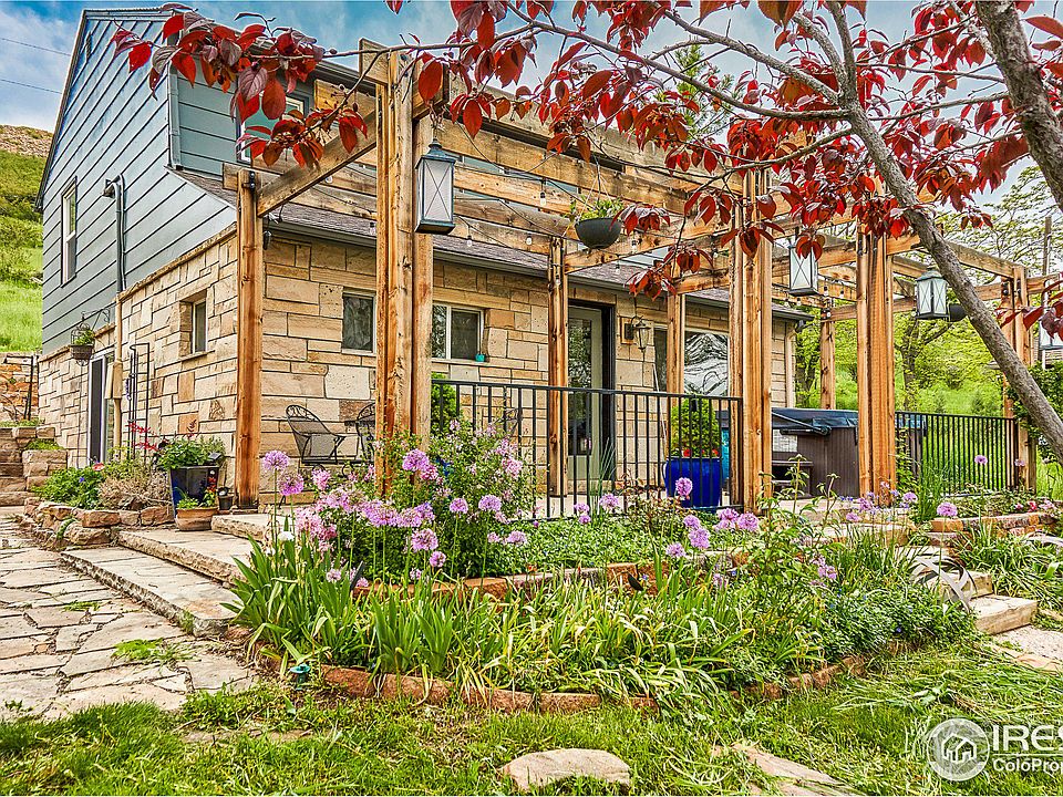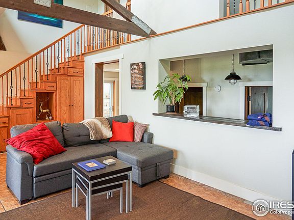 Remodeled foothills retreat on just shy of a half-acre in West Loveland, Come home to gorgeous sunrises and Devil's Backbone views from your front porch under the custom pergola. Enjoy filtered water through your whole house reverse osmosis system while relaxing by your woodstove under exposed wood beams in the vaulted living room. Entertain on the patio at the stone outdoor table. Outdoor storage and workspace a plenty between the two detached sheds. Harvest Honeycrisp & Gala apples, Cherries, and Mulberries from active fruit trees on the property. This one is an absolute must see.