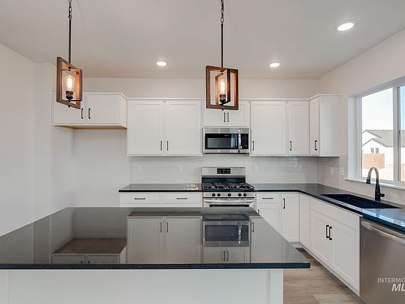 Enter into a brand new home in Meridian, Idaho and enjoy its benefits and stress free living! Achieve it all in the Amelia 2636! Rediscover the benefits of quality time in the open great room. The main level is ideal for hosting gatherings or a cozy night in, and the patio is perfectly situated to blend outdoor unwinding and indoor relaxation. The kitchen boasts upgraded finishes, including stainless steel appliances, a gas range, and stylish solid surface countertops. Escape upstairs to find all bedrooms positioned cleverly around a large loft. The primary suite spans the full width of the home and contains an en suite bathroom and a truly impressive walk-in closet. With a thoughtful floor plan, unbeatable square footage, and an abundance of flexible living spaces, the Amelia makes it easy to love where you live. Photos are similar. All selections are subject to change without notice, please call to verify.