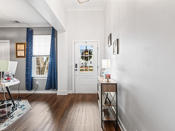Come & enjoy the breathtaking nature trails & wonderful amenities of Lake Wilburn's Green Trails neighborhood. This home features 3 bedrooms, 2 full bathrooms & 2 car garage in over 2,000 sqft of one level living. Covered front porch leads to front entryway into foyer & office space or formal sitting room. Living room features hardwood flooring, vaulted & wood beam ceilings. The open kitchen & dining room is great for entertaining. Kitchen is a chef's dream featuring oversized island w/seating, gas stove, custom hood, tons of counter space & pantry. Large primary bedroom features high ceilings & en-suite complete w/double vanities, shower, & walk-in closet. Convenient laundry room is great for a drop zone right off the garage. Split bedroom floor plan allows privacy for guest or children w/additional 2 bedrooms & their own private bathroom. Out back you will enjoy the coverd patio for football weekends as well as the flat, fenced back yard. Easy location just 8 mins to shops & I-459!