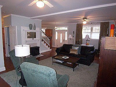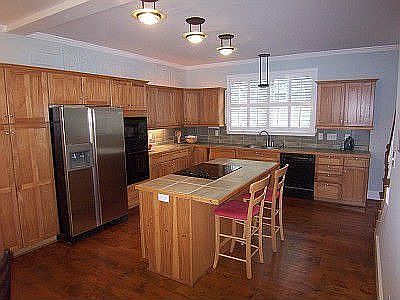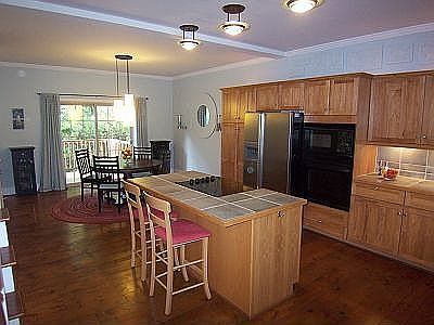 A beautiful unique home, w/pine floors on main and upper level. Huge Gourmet kitchen w/island and breakfast bar, w/doors to deck. 26 ft. great room w/9ft ceiling. Spacious bedrooms, tile baths, 3rd story loft offers office, recreation room and full bath. Private level back yard backs to walking trail to waterfront park. Zoned heating and cooling.