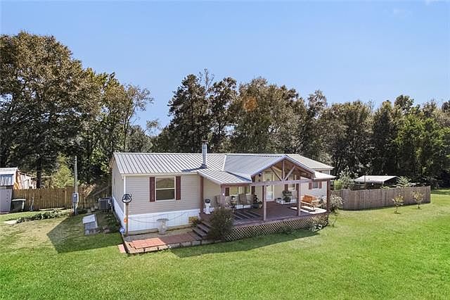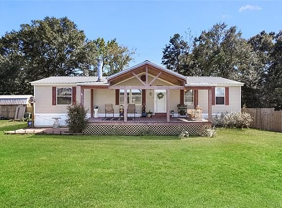 Tired of paying rent? This beautiful double wide features an open and split floor plan with a newly renovated kitchen and large porches. You can also take advantage of a pond nicely stocked with fish, right from the fenced backyard. Plenty of extra storage space also available. New roof and new AC! Seller offering $2500 toward buyer closing costs. Quiet area located on 1.36 acres in a flood zone X! Check it out soon before it's gone!
