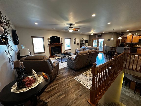 Welcome to this beautifully maintained one-owner home, offering a perfect blend of comfort and convenience. Located just outside of Mitchell on a paved road, this property provides ample privacy and tranquility while being close to recreational trails and the scenic Lake Mitchell. This charming home features 4 spacious bedrooms, 3 of them with large walk-in closets, and 3 bathrooms. With over 3400 sq. ft. of finished space, there's plenty of room to spread out and enjoy. The big kitchen, complete with island and lots of cabinetry, is ideal for cooking enthusiasts and family gatherings. Cozy up by the fireplace and enjoy the 1 acre tree lined lot with underground sprinklers. The finished basement includes a family room and wet bar, perfect for entertaining or relaxing. There's more...a 3+ stall finished garage provides ample space for vehicles and storage, along with a parking pad. The covered east-side deck is perfect to enjoy your morning coffee and watch the sunrises. Meticulously maintained and ready for its next owner to enjoy. Don't miss this opportunity to make this charming property your own! Check out the 3D virtual tour!