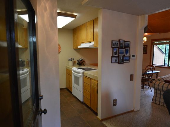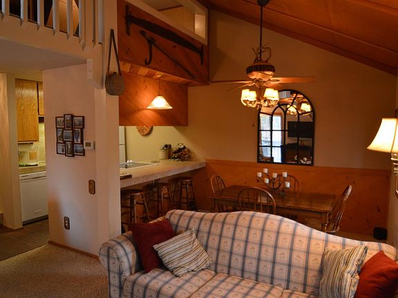 Nicely upgraded one bedroom, one bath floor plan with a permitted, heated, quality finished basement bedroom and half bath with laundry setup. Updated kitchen appliances, cabinets and counters, updated bath, new wood burning insert fireplace and lighting. Additional sleeping space in the loft, too! Huge deck on the side overlooking forested open space for privacy and relaxation in the mountains. Sold mostly furnished, too!