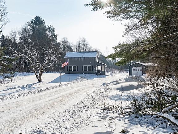 Looking for a home in the country but don't want to be too far from amenities? Here is it! Located just a couple miles out of the village this country home sits on 2.15 acres. Nestled in the woods you can enjoy privacy & no village taxes. The enclosed porch welcomes you as you enter into the large eat-in kitchen that offers an abundance of cabinets & counterspace. Plenty of room for a table & a breakfast bar for extra seating. The oversized living room is finished in knotty pine adding to country feels. Upstairs you will find the primary bedroom that has vaulted ceilings & a walk-in closet, a 2nd bedroom, another huge walk-in closet, plus a modern full bath with built in storage & the convivence of the washer/dryer that comes with home. There is a full dry basement for extra storage & bilco doors to the exterior. A 14 x 32 garage comes with power & extra storage/workshop space. Plus another garage at the front of the road for more storage. All the big-ticket updates have done already to include newer windows, vinyl siding, 10-year-old metal roof, new electrical entrance 5 years ago & a new septic/leech field less than 10 years ago. No need to worry about a storm this home has a whole house generator so you will always have heat & power! Located just minutes outside the village & 15 minutes to Fort Drum!