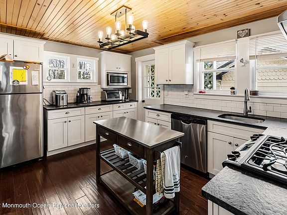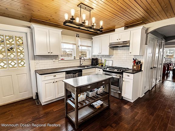 ENJOY YOUR SUMMERS KYAKING & PADDLEBOARDING TO THE MANASQUAN RIVER. Beautifully designed to capture the ''beach lifestyle''. 4 bedrooms, 2 updated bathrooms and hard wood floors throughout. The kitchen has SS appliances, a subway tile backsplash, a stained, wood plank ceiling. and opens to the dining area. The kitchen flows nicely into the living room, which has a a stone gas fireplace, w/ a large wood mantle. The living room opens to the year round sun room, w/ both French doors, as well as, sliders. This space also has beautifully stained wood ceiling and tons of natural light which makes this, perhaps, the best room in the house. Enjoy your time outdoors on the large deck, with direct access to the gazebo.