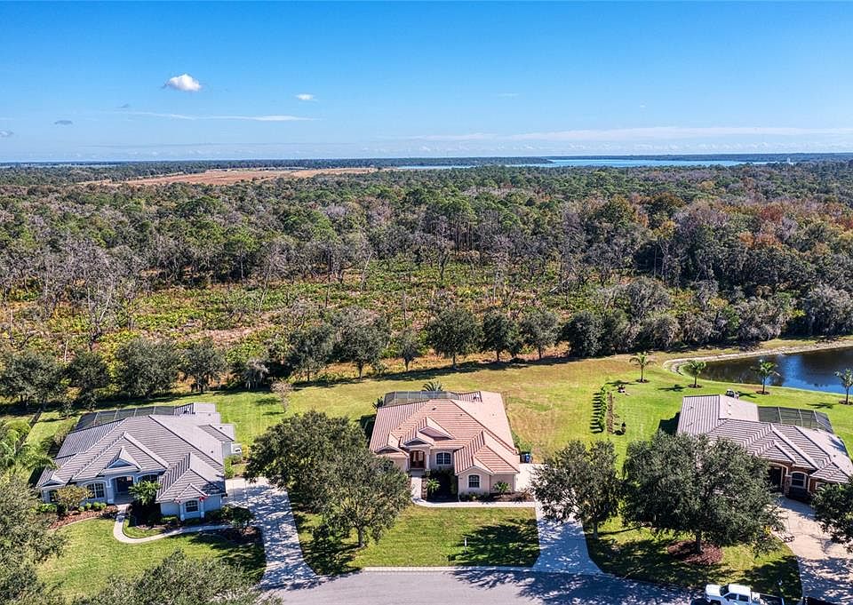 AHS HOME WARRANTY INCLUDED. NO CDDs & LOW HOAs. Over acre (0.623 acre) 4 Bedroom, 3 Bath, HEATED POOL w/ SPA, 3 CAR GARAGE, TILE ROOF home available in the sought after community of Rye Wilderness. All NEW FLOORING in the living areas and 2 bedroom have brand new carpet (12/2021). As you enter thru the double glass doors you will love this split bedroom floor plan. Owners suite is the perfect oasis after a long day with brand new carpeting, 2 equal size walk in closets, dual sinks, bath with soaking tub and separate shower. 5 sets of doors to the oversized lanai w/ HEATED POOL & SPA, perfect for entertaining. Kitchen has brand new stainless steel stove, granite countertops, 42" cabinets, built in desk and breakfast bar. 3 CAR oversized side load garage, 34x21 perfect for 3 cars plus storage. Formal dining rm and family rm separated by a breakfast nook where you can enjoy your cup of coffee/tea while watching the beautiful preserve through the screened lanai. The backyard looks out over acres of trees. Rye Wilderness is only 10 minutes from I75 to quickly take you to Tampa or Sarasota to enjoy the areas restaurants, art, shopping, gorgeous beaches and more. CHECK OUT OUR VITURAL TOUR ATTACHED.