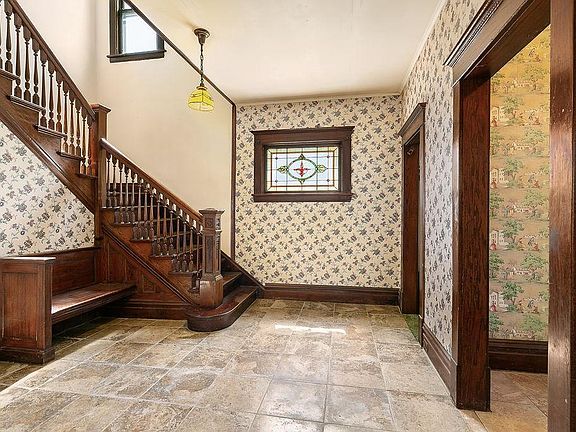 Welcome to this turn of the century home. With a little love this home will shine again! 9ft ceilings, original wood floors, french doors, original woodcraft intact, charming front porch and fenced backyard located in a great area of the city providing convenience. Recent updates include: electrical box, furnace, A/C, hot water heater, siding and some windows in approximately 2018 when back porch was finished off to add main floor 3/4 bath and laundry. new shingles in the last couple years. Over sized 2 stall garage off of rear deck that over looks the back yard.
