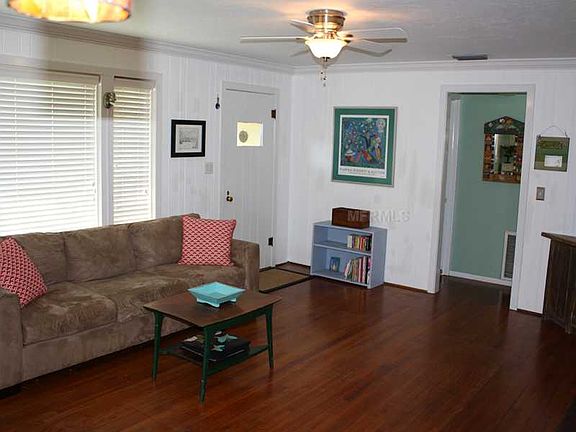 This wonderfully charming cottage-style home rests on a spacious lot-and-a-half, with a detached bonus room that's perfect for an office, art studio, exercise room or workshop. Recent renovations blended the timeless craftsmanship of a historic Florida bungalow with the modern convenience of today, and the open floor plan welcomes ease of living. From the original oak hardwood floors, to the wood-burning fireplace and custom kitchen, at every turn you will be impressed by the attention to detail. Two inviting bedrooms feature crown molding, while both bathrooms have been remodeled with custom features. Uniting the indoors with the outdoors, the master bedroom and kitchen open to a large backyard with a generous deck and hot tub, all enveloped by mature landscaping for privacy. Should you choose, you will also find ample space for the addition of your private pool. Just 10 minutes away are the pristine beaches of Anna Maria Island, and for immediate enjoyment of the crystalline Gulf of Mexico, this home is offered with a free kayak. This delightful home is ideal for the couple or small family who enjoy relaxed living, entertaining and the beautiful Florida outdoors.