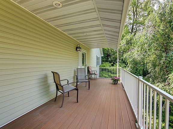 PRIVATE SETTING WITH A CAPTIVATING ENTRY!!! Maintenance free front deck. Beautiful kitchen features hickory cabinets, stainless steel appliances and breakfast bar. Master-suite with double sinks & walk in shower. The other main level bedroom has it's own access to the hallway full bath. All three bedrooms afford significant wardrobe space including walk in closets. Grand living room has soaring ceilings and views of nature. It features a gas fireplace and flows to the 3 season porch. Laundry room w/ half bath is located right inside from the garage. Lower level is a walkout w/ 17.9 x 16.4 workshop, a storage room, a bedroom with private access to the hallway full bath and a family room w/ sliding doors to patio. Roof new 2022. There is a 200 plus 100 amp electrical service. This sale is for Lot 4 that the home sits on and the abutting Lot 3 (28,750 sq feet total). Make this house your new home!