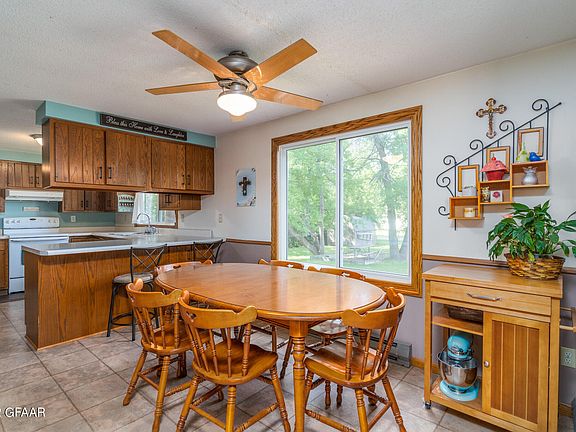 Move-in ready 4 bedroom, 2 bath home with country-view in city limits! Main floor has bonus room that could be a den, office, 5th bedroom, etc. Kitchen has ample counter & storage space. Nice-sized family room in basement with newer carpet. New shingles(July 22), vinyl siding & newer windows. Fenced-in back yard with shed & alley access. Mature trees provide nice shaded areas in front and back.