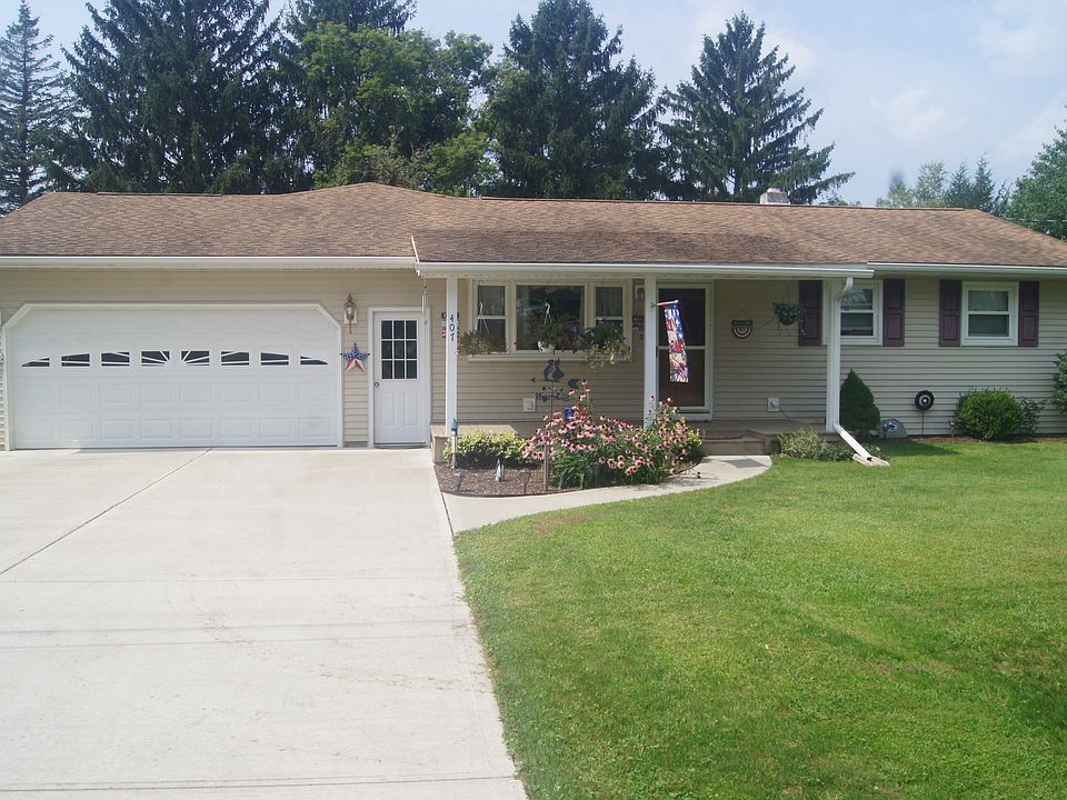 Beautiful 3 Bedroom 2 Bath Ranch style home on a double lot in a secluded development just outside of the village limits with public water and sewer and no village taxes. Stunning kitchen remodel with quartz countertops, Yorktowne Cabinets, and a spacious center island with stainless steel appliances. Large formal dining room leads out to a large back deck perfect for a hot tub area and the master bath features a double vanity, stand up shower, and heated jacuzzi whirlpool tub. Natural gas fireplaces in the dining room, master, and den to cozy up to. Make your move today!