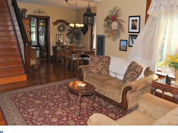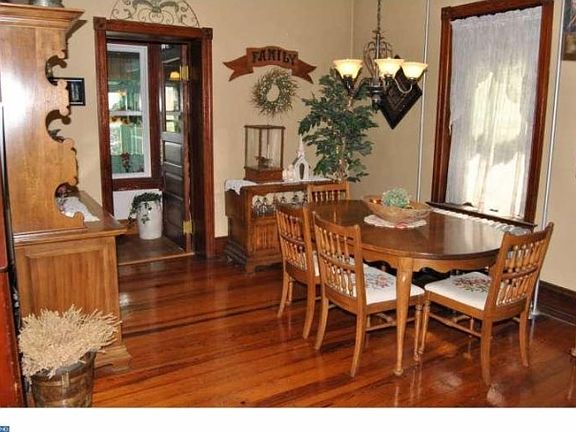 BACK ON MARKET!! Buyers backed out for personal reasons--not property issues. Own a piece of Perkasie Borough history! This solid brick Victorian single (NOT a twin) was once the site of Flaglers Fine Groceries and harkens back to the simplicity and style of the turn of the century. Residents of the lively Borough now enjoy community events, festivals, shops, restaurants, parks, walking paths and much more! A wrap around porch welcomes guests and leads to the a main entry in the living room and informal dining area. A full bath (handicap accessible with tile flooring and tile shower surround) on the main level and secondary exterior entrance allows for in-law residence possibilities for those with extended family living requirements. Beyond the living room, 2 French doors open to beautifully restored hardwood flooring and high ceilings that extend through the family room, dining room and up the stairs to the 2nd floor. All four bedrooms feature hardwood flooring. There is a second full bath (with tile flooring and tile shower surround)on this level and a sitting porch that overlooks the grounds, as well. The third floor has 2 large rooms perfect for a large office and/or playroom, man cave, fifth bedroom, etc--just waiting for your finishing touches. A combination mud room/breakfast room features slate flooring and exits to the expansive new deck (16 X 16), installed in 2014. The large one car garage with 2nd floor storage, carport and additional off-street parking can be found at the rear of the property. All windows on the first and second floors were replaced in 2012 and the heating system was also upgraded in 2007. In addition, the chimney stack was replaced within the past 2 years and the slate shingle roof still has another 50-75 years of life expectancy! There is a ramp to the basement for very convenient storage access which you will appreciate on moving day! Please take note of the low taxes. USDA 100% Financing Available