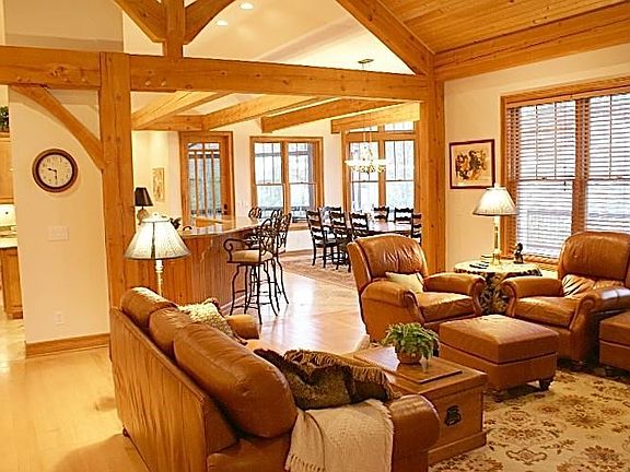 This spectacular Lake Home is NOT for everyone. It is a rustic, post and beam, true lake house on a fabulous, deep water, south facing lot. It does not have the common look of a regular house but rather, all the feel of what you'd expect in a Lake Home. Post and beam look with wooden plank ceilings in the Great and Game Rooms are all there. This is the builder's own home so no expense was spared. The house is over 5000 sq ft with 5 BR's and 3.5 BA's. The flooring is Maple Hardwood, Travertine and upgraded carpet. Walk through the Knotty Alder front door to be greeted by an airy foyer leading into the Great Room. Enjoy the comfortable feeling of this room with its view over the waters of Lake Keowee. The dining area and kitchen all flow around this area in the true Great Room effect. The kitchen is all knotty alder cabinetry with upgraded granite counters. There is an island with second sink for prep work and the range is located at the counter/bar so you can impress your friends with your cooking prowess. Off the kitchen and dining area is a screened porch with vaulted, wood plank, touretted ceiling. The screening extends 10' up so the view of the lake is not lost. The flooring of the porch as well as the decks is all Ipay wood (Ironwood). Now, off to the large master bedroom with views of the lake. The flooring is maple. There is a huge master closet and the dual sinked master bath boasts a soaking tub and a "snail shower" with two shower heads. On the main floor, there are two other bedrooms, one with ensuite bath, a powder room and the Game Room. This area is wonderful for a media room and games. There is a pool table with light here now that only takes up about 1/4 of the space. Below this area is the 3rd car garage with doors to the street AND to the lake. As you go down the stairs to the lower level, you will first see the workout area with TV. The family room, hall and workout area all have Travertine tile flooring. There is a large wet bar with wine cooler for entertaining. Down the hall are two oversized bedrooms and bath. Beyond the last bedroom is a large storage area. The lot is about 0.8 acres and has over 100' of shoreline. The full sized dock is in place and to the right as you face the lake, there is a beach area that is divided between this property and the neighbor. The view is almost due south so you'll have nice warm sunlight bathing the inside of the house in the winter while having shade in the summer. This house is not to be missed.