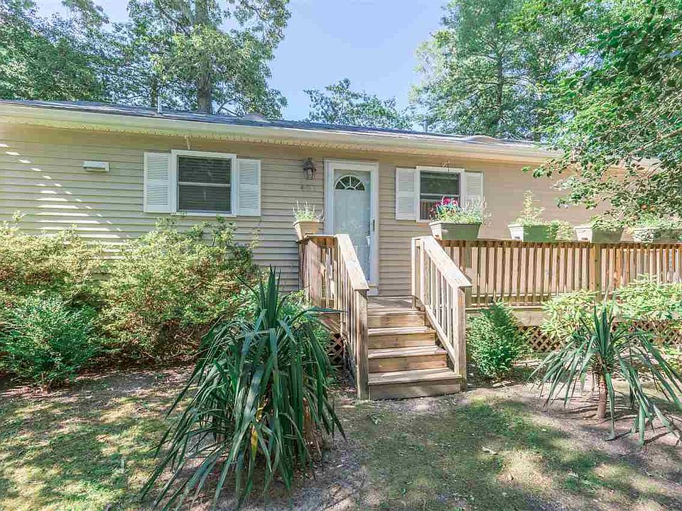 Tranquil setting just 2 blocks to the Bay! Don't miss this 2 bedroom, 1 bath home on an over-sized 50 x 129 corner lot with wonderful trees and a cedar fenced yard. The amenities include a 6 year old kitchen with granite counters, house water filters, 2 sky lights, central heat and air, electric hot water heater, tilt windows, vinyl siding, outside shower and gutter guards. Enjoy year round living or a summer get-away.