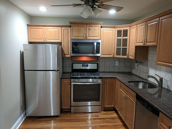 Newly renovated 2nd floor two-bedroom, one bath, kitchen with SS appliances and granite countertop, open style living room, laundry room with washer and dryer, new central ac/heating, and separate entrance. Additional upgrades planned including crown molding, wine cabinet, and additional storage. Located in quiet neighborhood, two blocks from the train station, easy highway access, plenty of street parking available, water included. Standard lease plus gas and electric. No pets. No smoking. Proof of income required. Background check required. Email / text / or call.