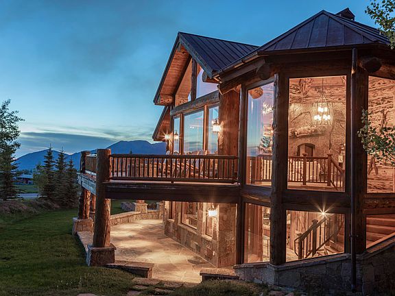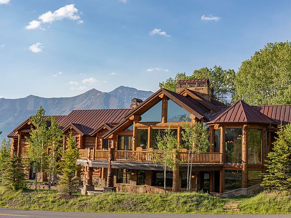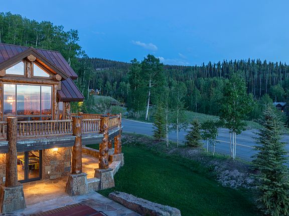 Constructed from massive logs handpicked from Santa Fe National Forest near Cerro Grande Peak the residence possesses the quintessential Rocky Mountain lodge ambiance adjoining 30 picturesque acres of open space, ski access just steps away with excellent solar exposure. Generations of family and friends will delight in its main level, 2.5 story great room with its massive floor to ceiling, four-sided fireplace. Kitchen, living and dining flow as one as families gather from seven bedrooms, captivated by the Wilson Massif view and sunsets through expansive, southwest window openings. A masterfully appointed chef's kitchen is supplemented by a fully equipped bar entertainment area. The west wing, expansive master with two private decks and two fireplaces (ensuite and within bath) is conveniently located on the great room level. All baths are appointed with the finest of granites, marbles and travertines with the master bath including a glass rain shower with two steam units. The main level also includes a craft room and guest bedroom with its own hot tub patio and ensuite bath with steam.
