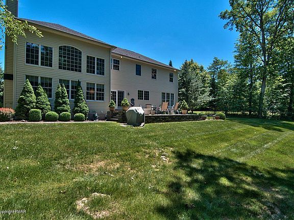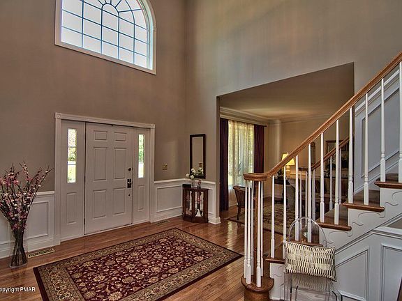 Live and play in a northeastern PA prestigious gated community of the Estates at Great Bear. After playing a challenging 18 holes on a Jack Nicklaus signature golf course, you can relax and enjoy dinner at the amazing clubhouse. A great location for commuting-just 75 miles from Manhattan and mins from 2 Martz commuter bus stations. In close proximity to Shawnee Ski Mountain, Water Parks, Medical Centers, and East Stroudsburg University, this 4-bedroom 3.5-bath showpiece home boasts many luxuries! A bright two-story foyer has lovely crown molding and hardwood floors Two-story FAM RM has floor to ceiling windows and fireplace. LR and DR include crown molding and chair rail details. Beautifully appointed kitchen has a center island and SS appliances.
