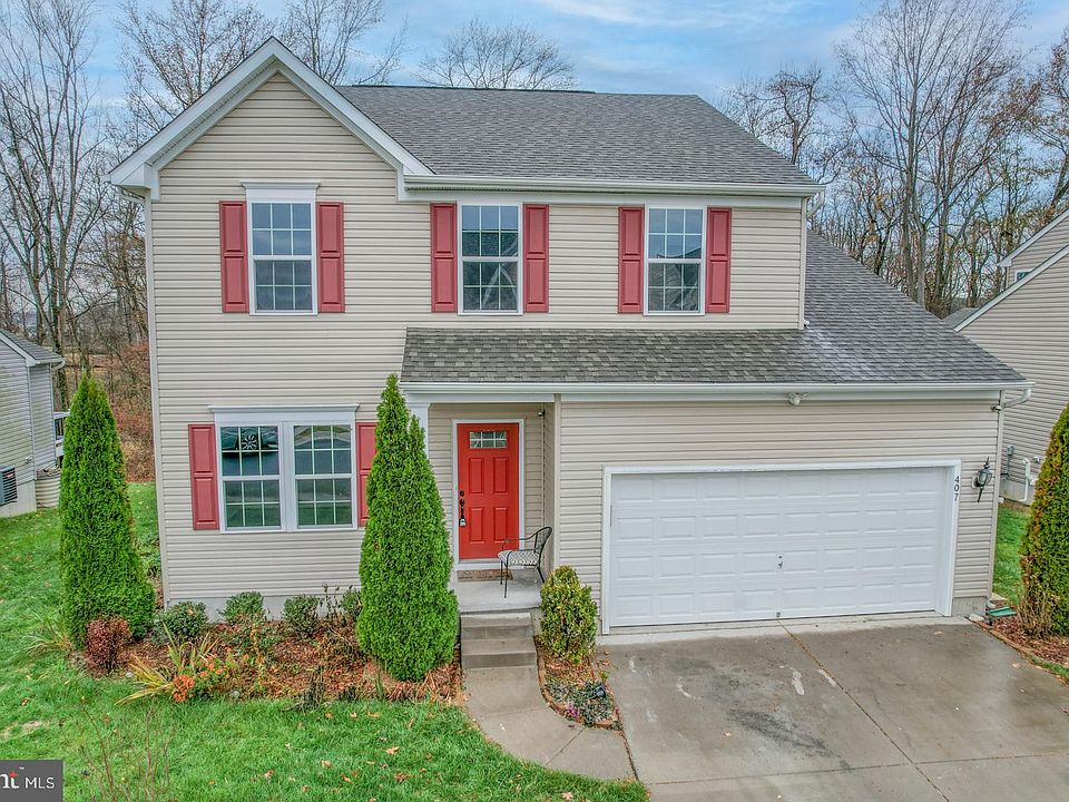 Gorgeous 4 bedroom, 2 1/2-bathroom, 2 car garage colonial backing to woods in Parker's Run. Built in 2017 the main floor of this home offers a living room with hardwood flooring, family room with gas fireplace and new carpet, kitchen with granite counter tops with extended bar seating, 42" cabinets, stainless steel appliances, and recessed lighting, morning room with hardwood flooring and cathedral ceiling, powder room and laundry room. The upper floor offers 4 bedrooms with ceiling fans, a hallway full bathroom and features a huge owners suite with trey ceiling, walk-in closet and a private owner’s bathroom with double bowl vanity, tiled shower and soaking tub with tile surround. The basement is finished with new laminate flooring and recessed lighting and offers an egress window, bathroom rough-in and a storage area. The exterior offers a deck with steps to the back yard, vinyl siding and a concrete driveway spacious enough for up to 4 cars. The owners had the home freshly painted for you and is available for quick possession!